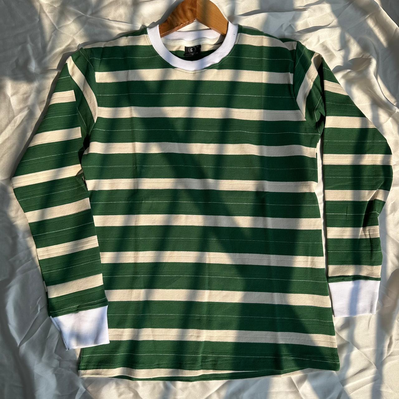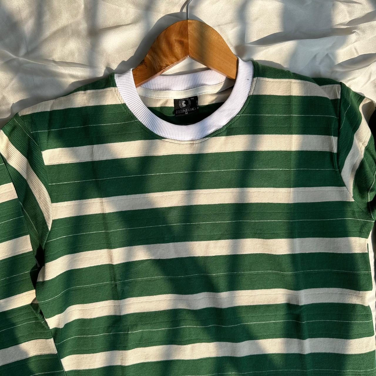 Featuring a classic crew neck and a clean striped design, it delivers an effortless, modern look that works equally well on its own or layered under jackets and hoodies. The full-size fit ensures all-day comfort with a structured silhouette that holds its shape wash after wash.
