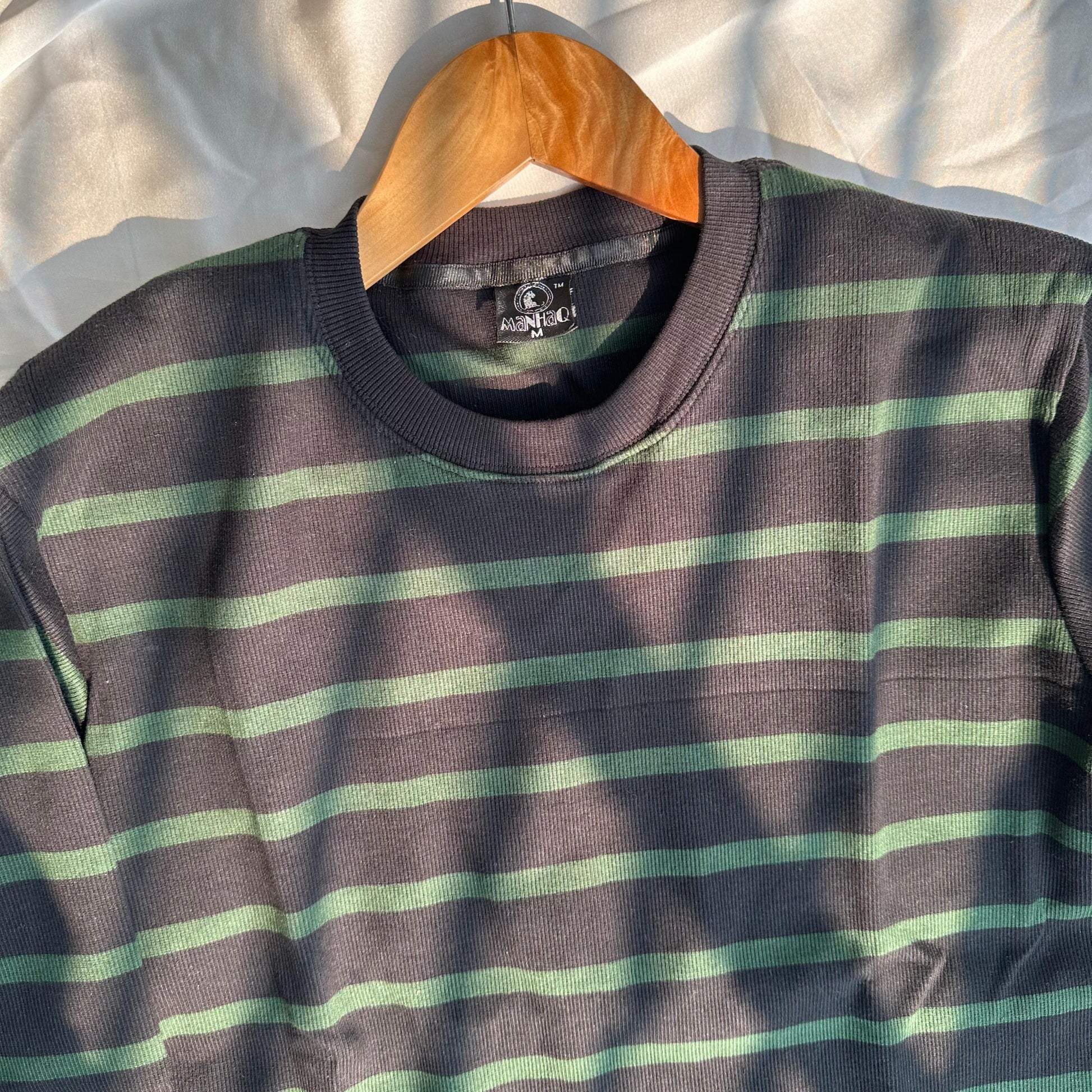 Featuring a classic crew neck and a clean striped design, it delivers an effortless, modern look that works equally well on its own or layered under jackets and hoodies. The full-size fit ensures all-day comfort with a structured silhouette that holds its shape wash after wash.